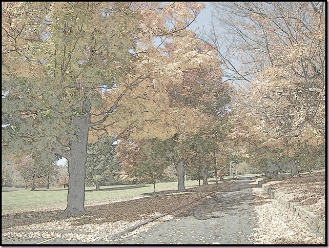 Your photos are great and I too love to use different applications to change my photos. Fall in the mountains where we live is almost peak right now. However, for the next two weeks we will be in Fl. Missing the peak color I guess.