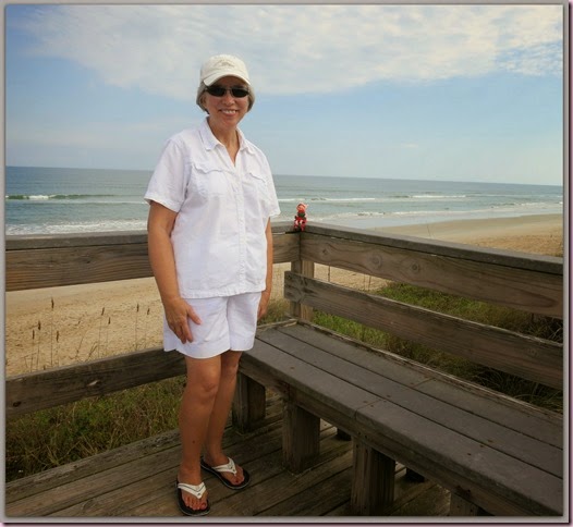 How much fun to have the elf go to the beach with you! Hope you are having a wonderful time. 75 degrees is certainly warmer than it is here at the moment....in Texas! Brrr...only 45 this morning.