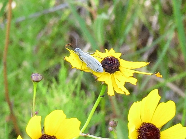 That blue grosbeak is such a beautiful bird. What a sight that must have been to see him on the fence. The white flowers are lovely - they kind of look like bridal bouquet. And that's a great photo of the bug on the yellow flowers.