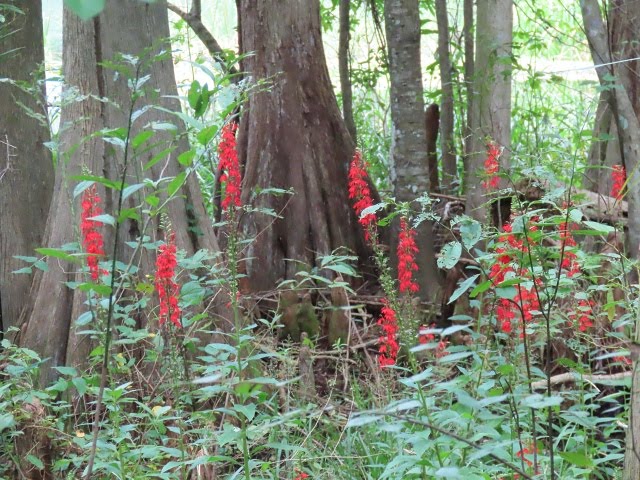 Hmmmm, I always enjoy your different landscapes in Florida, and those are gorgeous red spikes...Cardinal flower. Lovely! Thanks for sharing, Sandi.